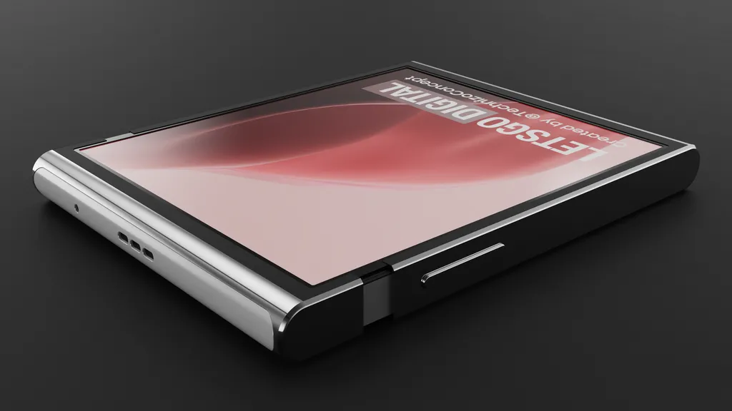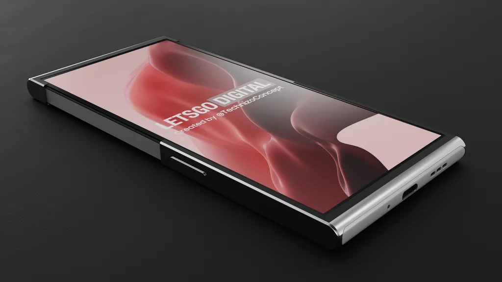 当卷轴屏幕缩小和/或放大时,外壳的上部会沿着移动。在屏幕被拉出的地方,外壳稍微薄一些。这与滚筒系统有关--它必须确保设备能够顺利拉入和拉出,即使在频繁使用之后。此外,滚筒确保柔性丝网的弯曲率不会变得太大,从而使丝网看起来没有皱纹。