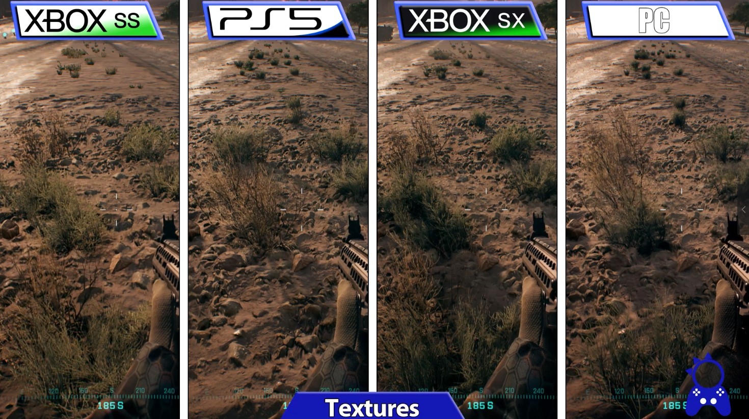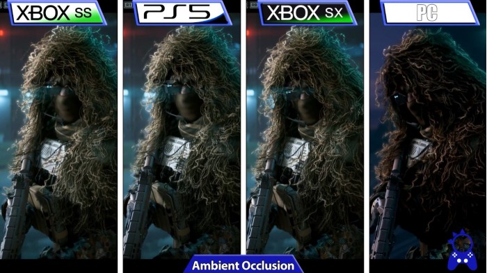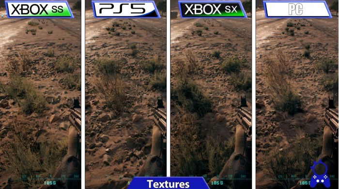 在大多数情况下PS5与XSX的纹理相似,但在部分情况下PS5纹理质量更接近PC,XSX的纹理质量较低。与PS5相比,XSX的各向异性过滤有轻微改善,但XSS的更低。