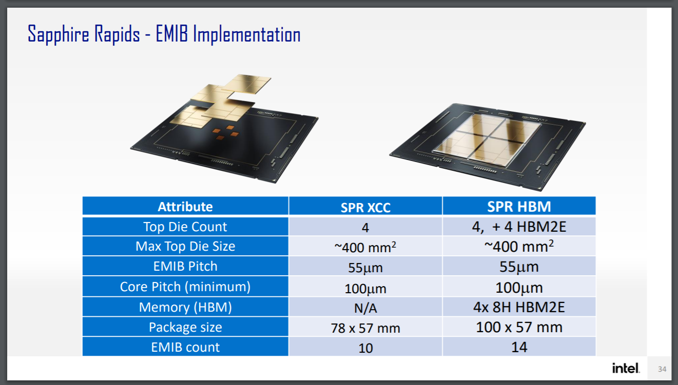 Sapphire Rapids的核心面积约400平方毫米,没有HBM2e的封装面积4448平方毫米,加入HBM2e的则扩大到5700平方毫米。