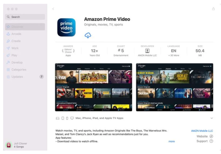 据MacRumors报道,亚马逊周一为其Amazon Prime Video服务推出了一个原生macOS应用,该应用现在可以从Mac App Store获得。