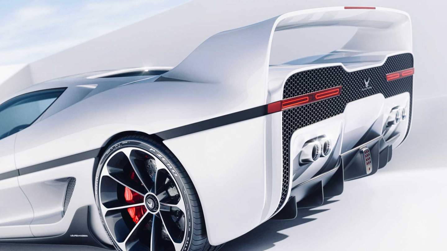 Project Fenix继承了F50的尾部,特别是其巨大的后扰流板和透明的发动机盖,所有这些都是为了在90年代看到那台了不起的V12发动机。不过遗憾的是,USD没有提到Project Fenix的引擎盖下隐藏着什么,但如果它从阴影中迸发出来的是全电动动力系统,我们对此也不会感到惊讶。然而,走近一看,你会发现Fenix项目背后有四个尾管,所以可以认为它将获得某种形式的内部燃烧动力。