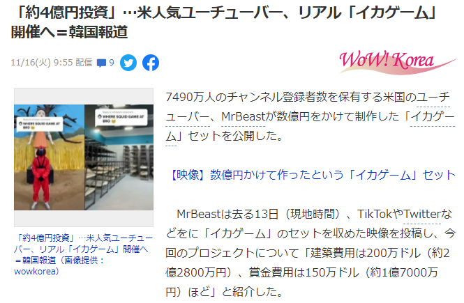 由于网飞剧《鱿鱼游戏》世界爆火,带动各路衍生玩法,近日据外媒报道,拥有7490万粉丝的美国网红主播MrBeast花费近400万美元打造了真实版鱿鱼游戏,其中悬赏金就高达150万美元。据悉,MrBeast的团队为了打造与剧中近乎一样的规模场景,近400万的预算中给参与者的赏金就高达150万美元,其余的用作建筑、服装以及宣传推广等费用。