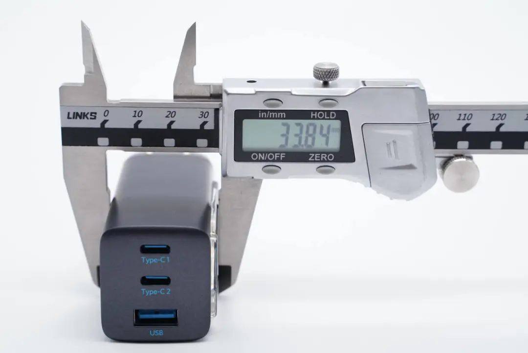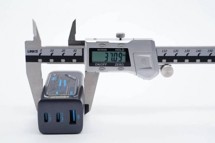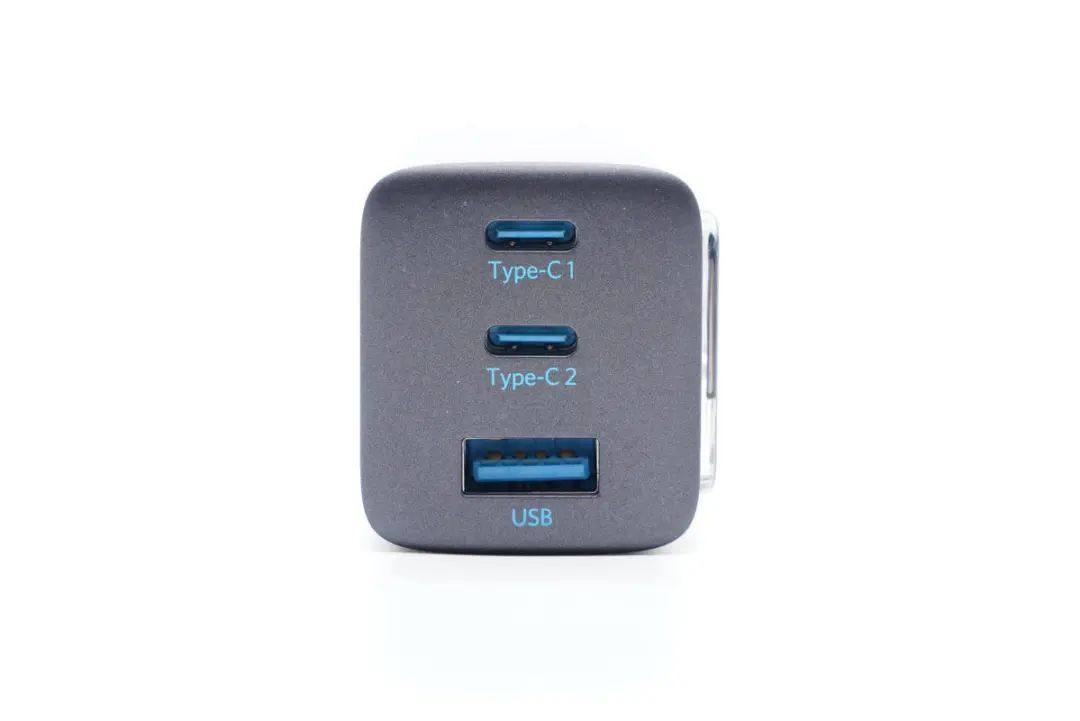 输出端为两个USB-C接口和一个USB-A设计,可以同时为三台设备充电。