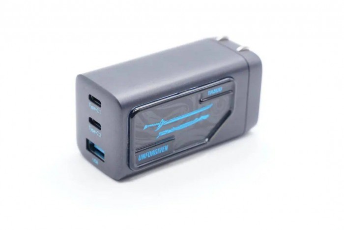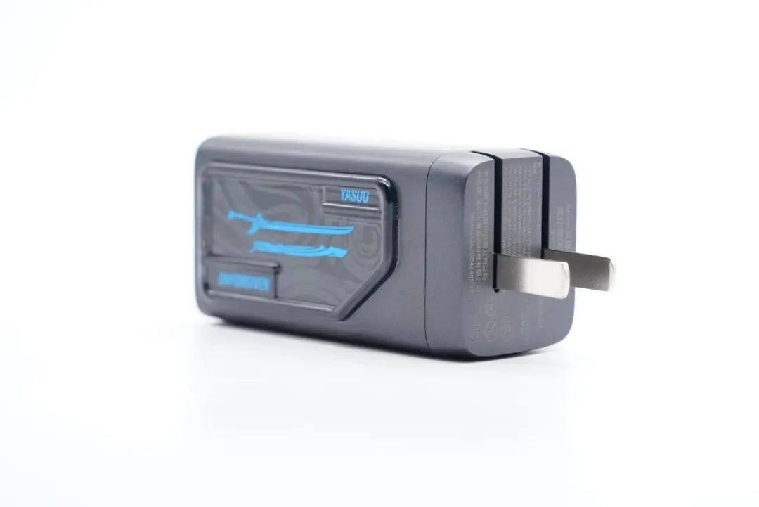 Anker英雄联盟65W氮化镓快充充电器在外壳颜色方面延续了超能充系列,黑色磨砂外壳看起来很沉稳,同时也不同容易刮花,更加耐用。同时,充电器的在外壳设计上融入了英雄联盟的元素,并以YASUO这一角色为切入点,既做出了差异性,也比较符合当下的市场潮流。