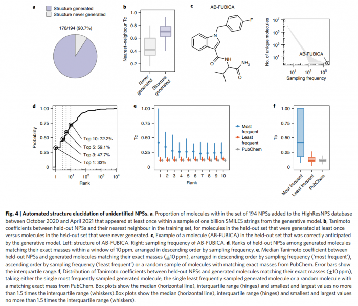 基于此训练,该模型生成了大约890万种潜在的人造毒品。模型训练后,研究者将非法市场上出现的196种新人造毒品进行测试,发现其中超过90%的新型毒品在模型生成的种类中。