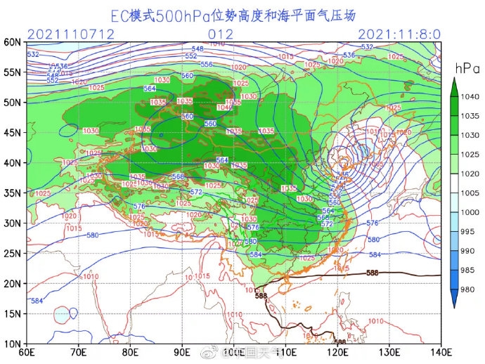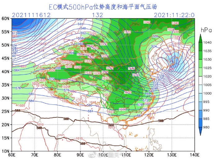 因为天气配置相似,所以这股冷空气将延续11月上旬那波寒潮的基本特征——影响范围广、降温实力强、雨雪范围比较广,自西北方向而下,南下范围很广,包括华南也会受到影响。