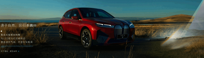 据介绍,宝马iX此次搭载了流光溢彩玻璃控件、车顶更是采用宝马有史以来最大的全景可调光天幕,还有橄榄叶鞣制真皮内饰等豪华配置多达30项。