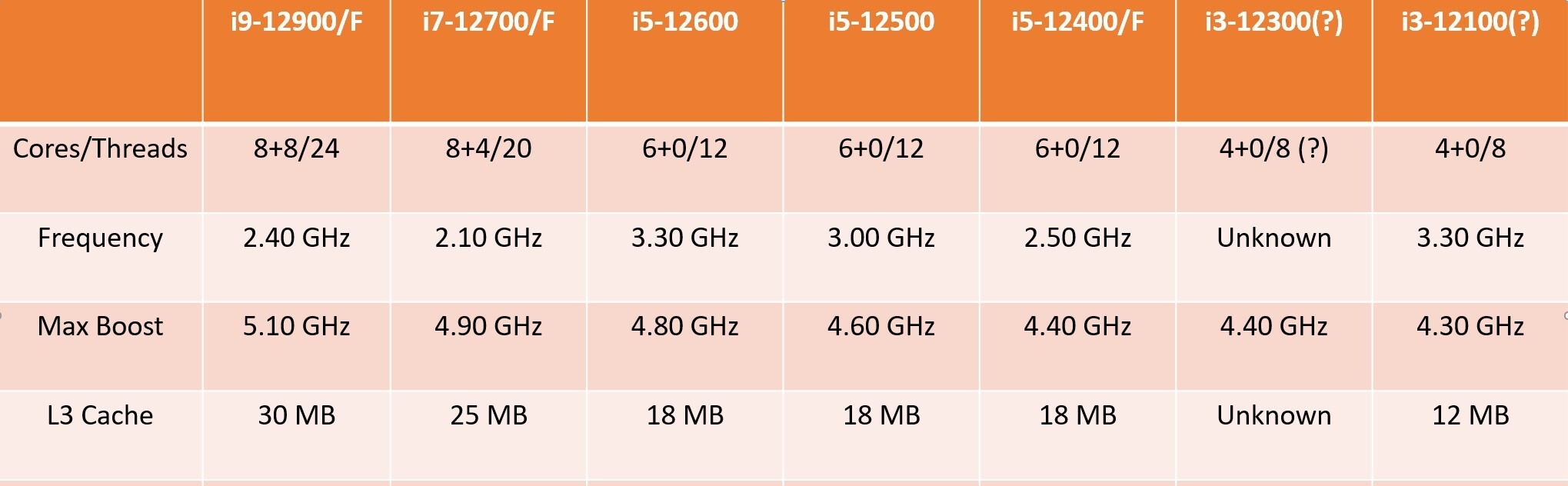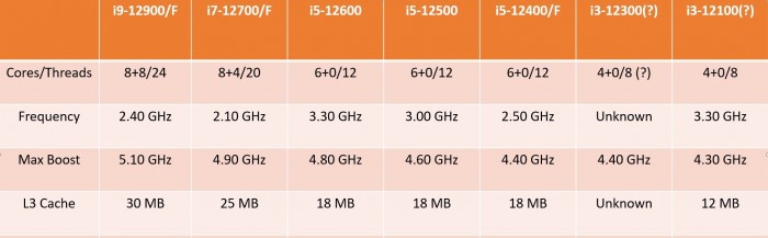 Intel 12代酷睿非K系列型号、规格全曝光:没有小核的i3来了