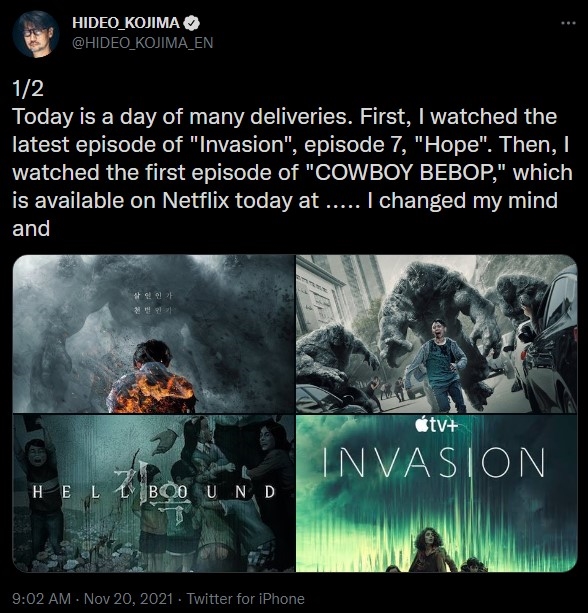 设立于东京品川的《死亡搁浅》开发单位小岛工作室(Kojima Productions)如今要在洛杉矶开立分号,专司影视制作,长期混迹于游戏行业的小岛终于要圆导演梦。若以社交媒体账户所发布的动态去拟合小岛个人行事历,会发现他不是在看剧就是在看碟: