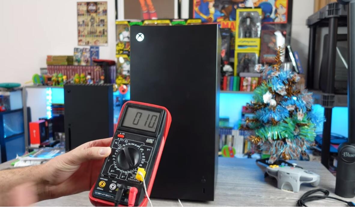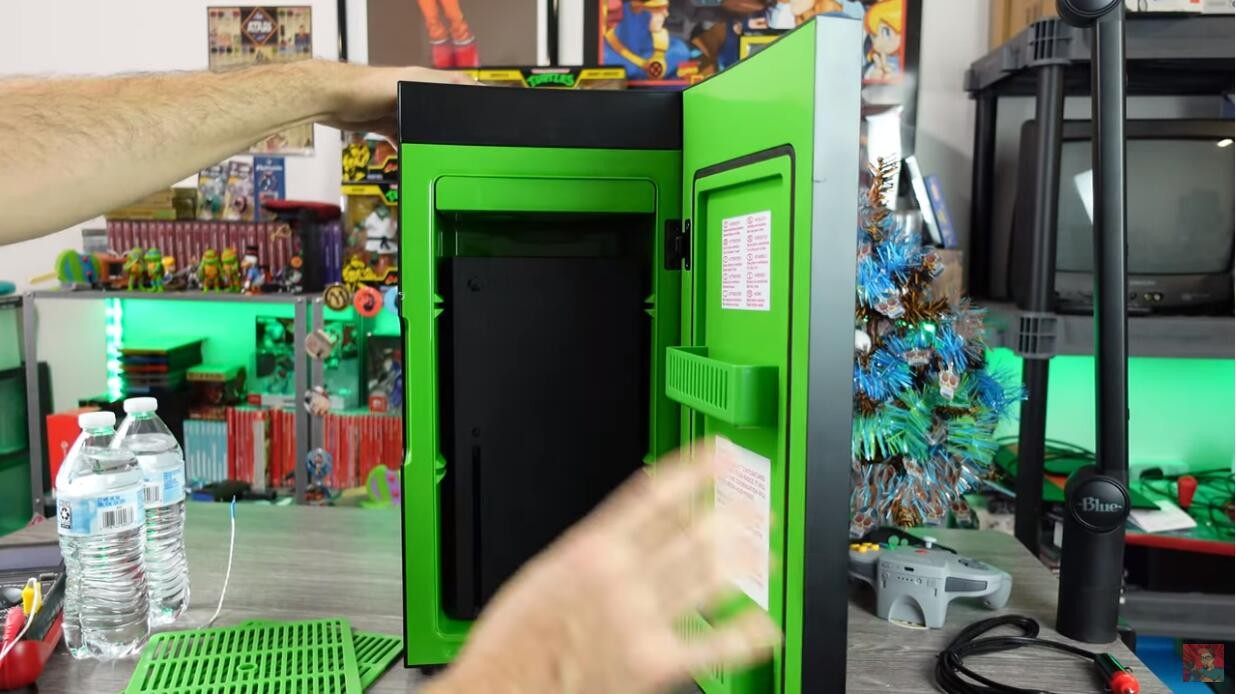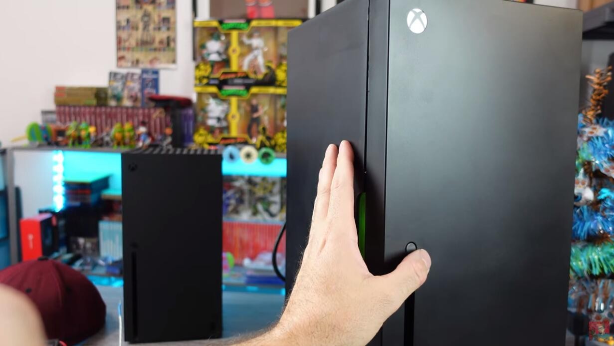 微软预计12月发售的Xbox Series X迷你冰箱据外媒报道已经提前发货,国外油管主Madlittlepixel已经拿到了迷你冰箱并进行了评测,一起来看看吧。这个小型的XSX迷你冰箱并没有XSX系列重,顶部由塑料制作,感觉很廉价。在冰箱正面有个USB接口,可以为手柄充电。