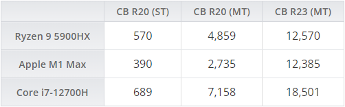 几天前,网络上曝光了 Alder Lake-P 酷睿 i7-12700H 标压处理器的基准测试成绩,可知其具有较 AMD 锐龙 R9-5800HX 和苹果 M1 Pro 更大的性能优势。