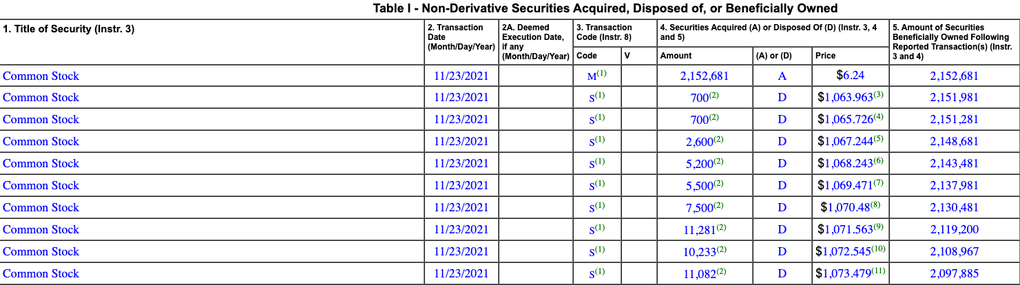 文件显示,马斯克在11月23日总计通过105笔交易出售了934,091股股票,加权平均售价介于1063.963美元至1179.083美元之间。这些股票将在2022年8月13日到期。