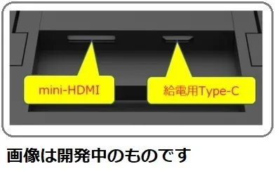 根据日本商店页面的机器翻译,它可以通过USB-C直接接收笔记本电脑或台式机的电源,并通过迷你HDMI接收其视频信号。商店页面说移动电池也可以使用。