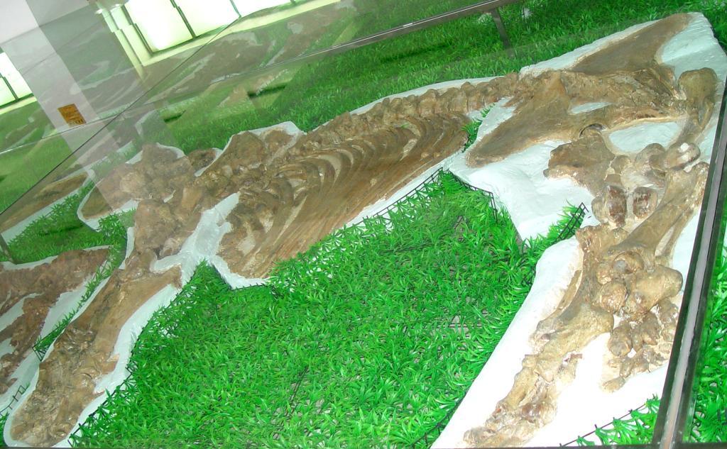 山东山旺盆地发现的并角犀骨架化石 (中科院古脊椎所供图)
