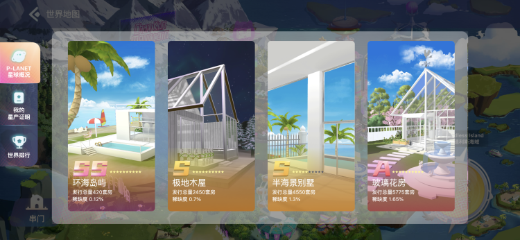 虹宇宙在10月28日开始内测,用户在线上预约抢购虚拟房产,有幸摇到号的用户就可以比大部分人提前进入游戏。虚拟房产根据房型和地貌从SS、S开始递减到C级,一共分为五个级别,公测前释出的房子只有3500套,一般是较高等级的虚拟地产。