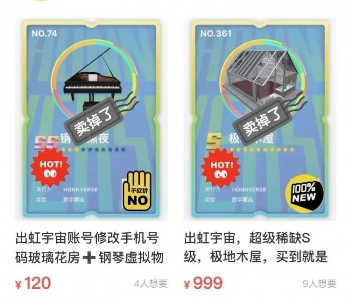 闲鱼上现在已经有无数的虹宇宙虚拟数字藏品卖家,大多数是来卖房的。现实里真金白银交出去,回头在线上对方把不能买卖的房产赠送给你。一套房低的两三百,高的挂到万元。还有手上握着四十套准备一次性出手的,虹宇宙自称NFT的数字资产暂时还没能摆脱现实。