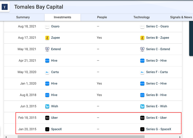 TBCA是一家全球性风险投资和私募股权公司,曾投资过包括Uber在内的12个项目,并在2015年2月与Google等共同参与了SpaceX G轮投资,总规模10亿美元。