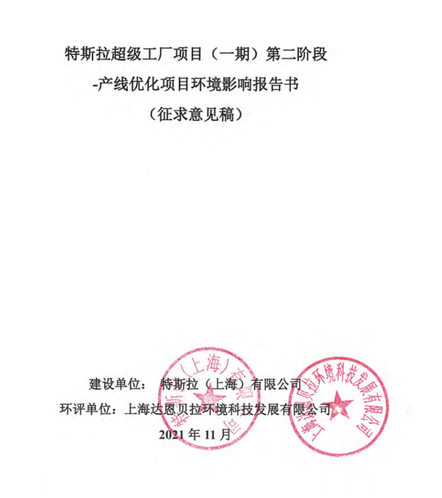 11月26日,有媒体从上海企事业单位环境信息公开平台获悉,特斯拉对上海超级工厂(一期)第二阶段的产线优化项目进行环评公示。环评报告显示,该产线优化项目投资总额高达12亿元人民币,其中环保投资8500万元,占比7.08%,预计今年12月动工,明年4月完工。