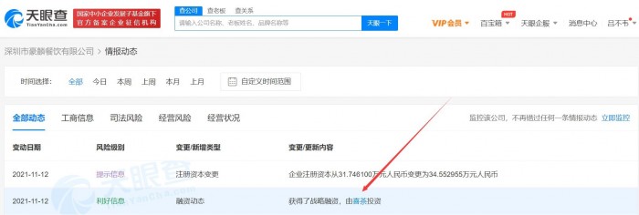 在企查查工商资料中,“野萃山”关联公司深圳市豪麟餐饮有限公司的第一大股东是持股60%的喜茶。