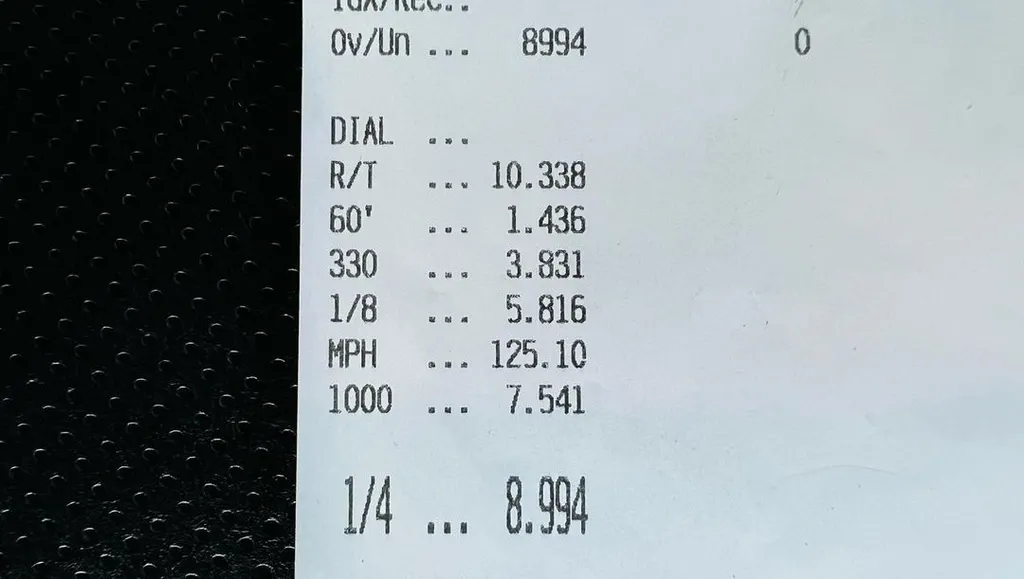 该车没有对动力系统或车身进行改装,甚至没有完全剥离,但他们确实拆除了乘客座椅以减轻重量。他们还使用了一些更注重性能的车轮和轮胎。通过这些修改,他们能够在8.994秒内完成155.1英里的速度。