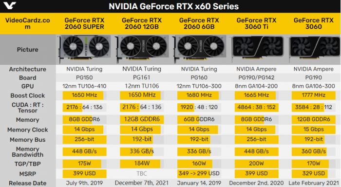 核心芯片仍然是12nm工艺的TU106,流处理器从1920个增至2176个,同时光追单元、张量单元分别从48个、120个增至64个、136个,只是核心频率从1680MHz降低到1650MHz。