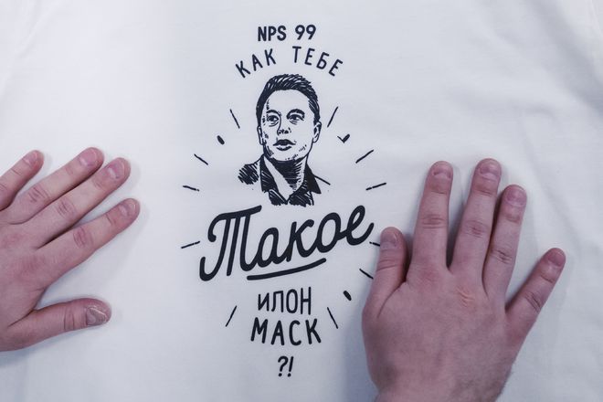 卡拉瓦耶夫最畅销的衬衫之一是一张马斯克的脸素描,上面写着:“埃隆·马斯克,你觉得怎么样?”这如今已经成为俄罗斯最流行的表情包之一。