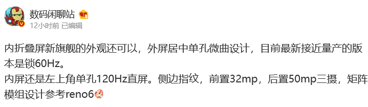 近日,业内人士Ross Young在国外社交平台爆料,华为和OPPO将在年底发布可折叠屏手机。现在,关于OPPO的折叠屏新机又有了新消息。据数码博主@熊猫很禿然爆料,OPPO折叠屏手机将首发自研影像芯片,IMX766+自研ISP挺有看头。