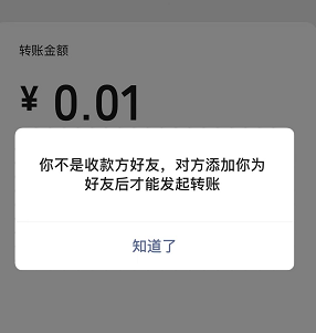 想知道李跳跳检测微信好友的原理,首先差友们要明白微信的一个机制:在微信中,大家是不能对陌生人发起转账的。
