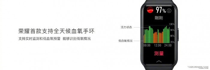 去年11月,荣耀手环6正式发布。正面无按键的全屏一体化设计,1.47英寸,比小屏手环大出近一倍,比很多手表的屏幕都要大,吸引了不少目光。荣耀手环6支持单次血氧检测功能,可以快速监测用户血氧状况。时隔一年,荣耀手环6迎来全新升级,成为荣耀首款支持全天候血氧监测的手环。
