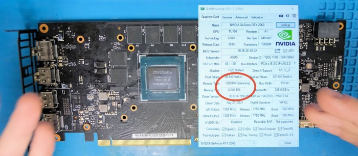 NVIDIA即将重新推出RTX 2060,不仅仅是显存翻番到12GB,流处理器、光追单元也会从1920个、48个增至2176个、64个,核心频率略降至1650MHz,整卡功耗则从160W来到184W。其实在此之前,就有民间大神魔改了一块RTX 2060 6GB,手动更换成了12GB显存(早先还曾改造过RTX 2080 Ti 22GB),使用的是三星2GB GDDR6颗粒,GPU-Z也能准确识别。