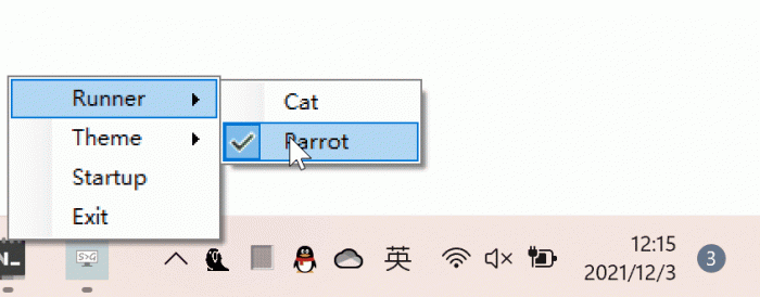 RunCat的功能就是这么简单,它的卖点在于萌,实际上的确也非常萌。除了猫猫外,RunCat还提供了鹦鹉的样式。