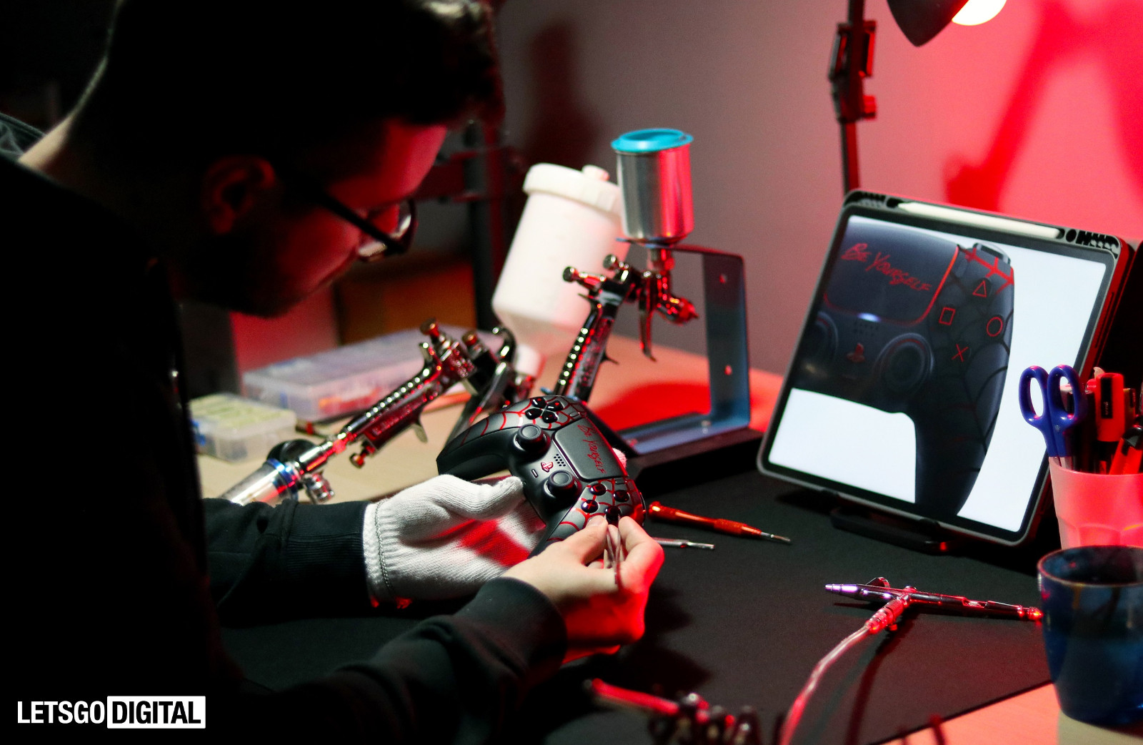 Berta 甚至将灯条也涂上了红色,启用后可呈现出不同的颜色组合。作为首款配有“改良灯条”的 DualSense 手柄,它还可在充电过程中给出指示。
