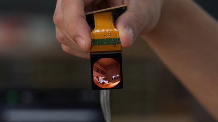 索尼在近期举办的“索尼技术日”活动中展示了采用OLED微型显示器与低延迟技术的VR头戴装置研发原型。据悉该系统仍处于早期研发阶段,因此仍采用手持接眼的方式观看,而且接线繁多,离可以轻便地配戴在头上使用的阶段还有相当的距离。