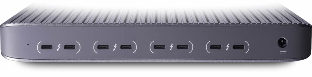 电脑配件公司 Iodyne 刚刚推出了一款旗舰级多 SSD 存储盒,特点是配备了多达 8 个雷电端口。得益于专有的多路 NVMe 固态硬盘访问设计,每台主机可通过双雷电口来提升性能,传输速率高达 5GB/s 。官方宣称 Iodyne Pro Data 是首款全 NVMe 纯 SSD 雷电 RAID 设备,结合了优雅的机箱外形 + 12 路 NVMe SSD 插槽 + 8 个雷电端口。