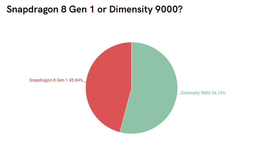 不过,在Android Authority的一次统计中,更喜欢天玑9000的网友却占了多数,比例54.16%。