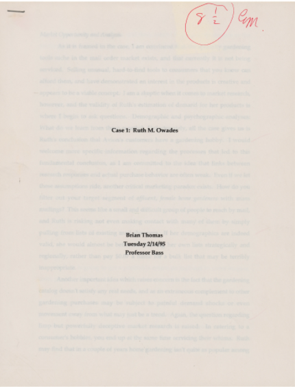 据拍卖公司RR Auction介绍,这位名叫布莱恩·托马斯(Brian Thomas)的学生从宾夕法尼亚大学沃顿商学院1995年开设的一门名为《创业精神:实施与运营》的课程中发现了这些作业。马斯克当时是这个班的助教。他在托马斯的作业上没有留下评语,只写下了自己名字的首字母缩小和得分。