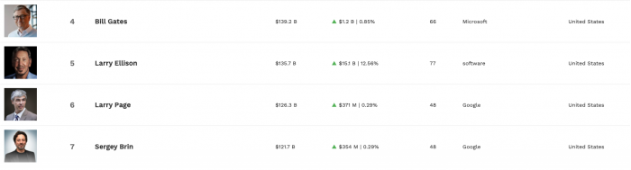 受到季度业绩超出预期和追加回购100亿美元股票的提振,甲骨文股价周五收盘大涨16%,创下过去20年来的第二大涨幅。埃里森是甲骨文最大股东,持有11.4亿股股票。《福布斯》富豪榜显示,埃里森现在的净资产已增长至1357亿美元,超越了谷歌联合创始人拉里·佩奇(Larry Page)的1263亿美元、谢尔盖·布林(Sergey Brin)的1217亿美元,跃居世界第五,距离盖茨的1392亿美元也只有一步之遥。