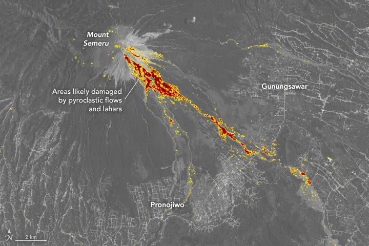 事实证明,席卷塞梅鲁的泥石流对生活在卢马扬区山脚下的村民特别是Curah Kobokan的村民来说是灾难性的。大量的房屋被摧毁或损坏,许多动物也是这次火山爆发的受害者,并且已造成了46人死亡--死亡将会进一步上升。