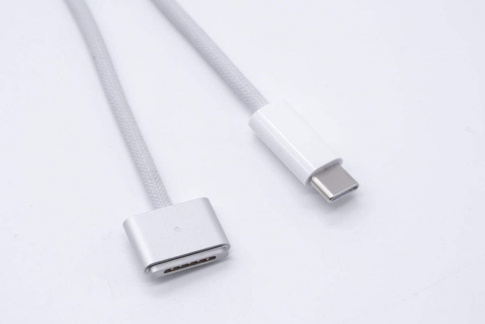 首先这次的 MagSafe 3 磁吸充电线采用分离式设计,并没有和充电器封装一体,这大大方便了后期的使用和维护。