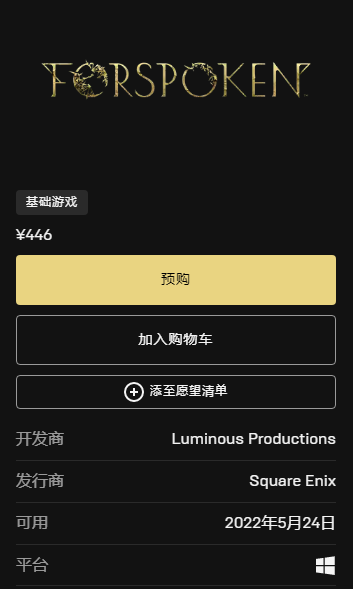 此外,SE的另一款3A游戏《Forspoken》当前已经公布了售价,该作的PC版国区售价也是446元,而海外市场也遵循了69.99美元或79.99欧元的超高定价。