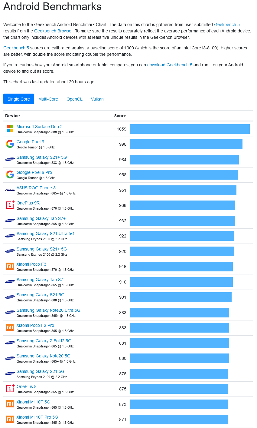 值得注意的是,Surface Duo在GPU测试中表现不佳,包括OpenCL和Vulkan。CPU结果可能不一定等同于实际性能,但考虑到外形因素,这些结果实际上是不错的。