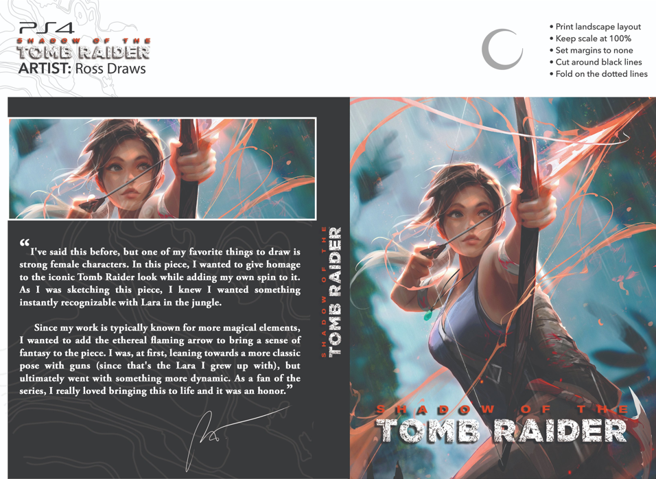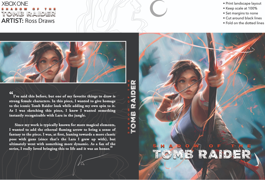 今年是著名动作冒险游戏《古墓丽影》(Tomb Raider)系列问世的25周年,游戏在官方Twitter上发布了与知名画师Rossdraws合作的《古墓丽影:暗影》新版重绘封面。玩家可以自行下载打印放在实体版PS4和Xbox的光盘盒子上。官方会在本月将推出三款经过重新构思的封面。