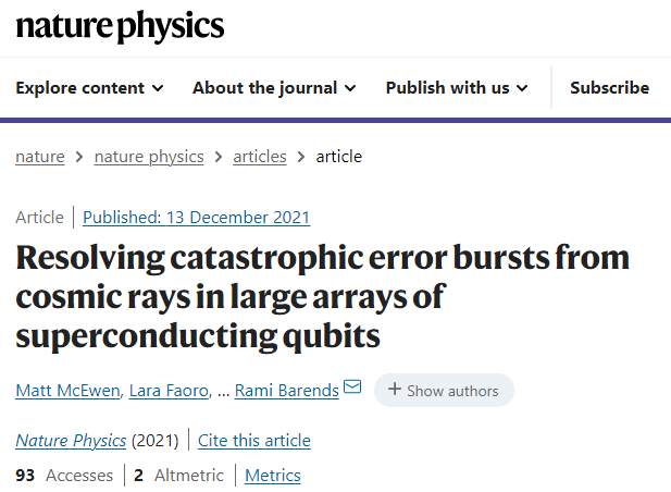 然而处理器背后的研究团队,还是想要刨根问底,并在《自然·物理学》上的一篇新论文中详细介绍了宇宙辐射是如何影响量子比特的。