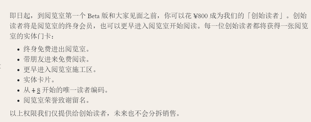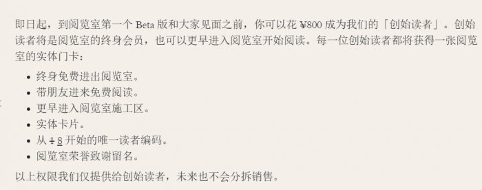 需要注意的是,“阅览室”APP会是一个全付费的产品,不设免费档。官方称“这是有悖于行业常识的,这个领域到处都是免费的产品。但我们还是愿意相信,读者愿意为自己获得的体验付费。”