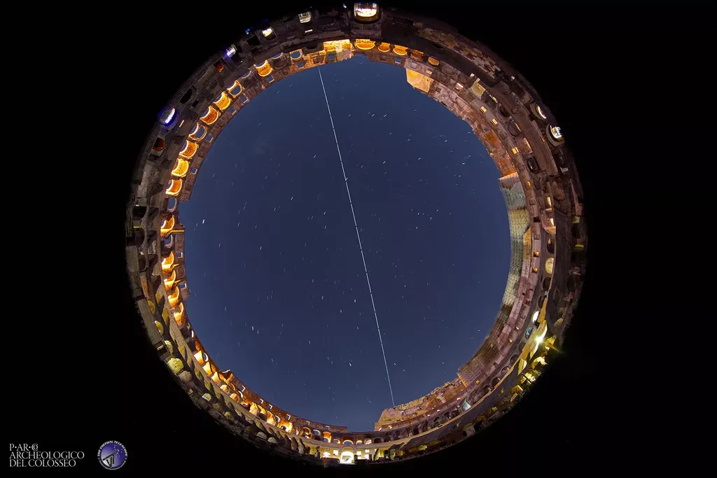 想要在地面上拍摄国际空间站是非常难的事情,因为空间站以大约每小时 17500 英里(28000 公里)的速度飞驰,我们能看到的只是一个小光点。因此,下面这张从罗马斗兽场拍摄到的国际空间站就显得弥足珍贵了。