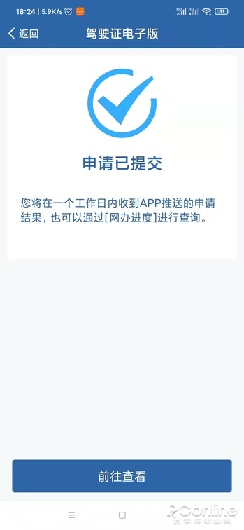 ⑤一个工作日后,如果资料验证没问题,你的电子驾驶证就会自动显示在“驾驶证电子版”。