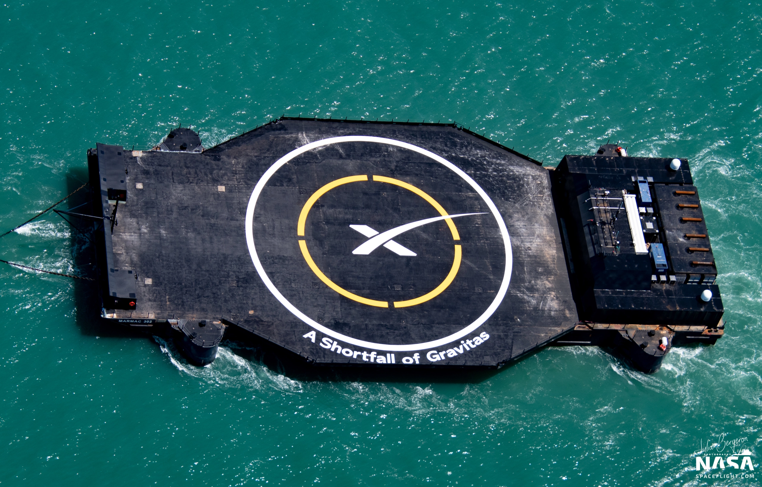 SpaceX最新的无人船"A Shortfall of Gravitas"驻扎在距离卡纳维拉尔角正东方向约661公里处。无人船由Finn Falgout牵引,它由多功能船Bob支持,该船还将在距离地面约797公里处进行整流罩回收。
