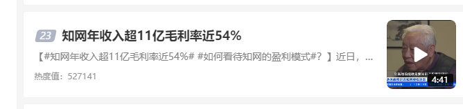 今天,微博话题#知网年收入超11亿毛利率近54%#登上热搜榜,引起了网友的广泛讨论。有网友表示,认同知识创作者应得到收益,转载的平台得到一定的合理利润,使用者交一点使用费也都很合理,但对现在知网过高的收费与垄断行为表示难以理解。