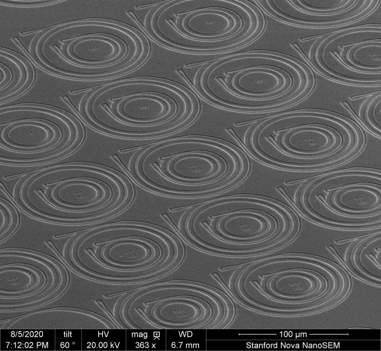 为了创造他们的微梳,研究人员将激光穿过一个碳化硅的微环(这是利用斯坦福纳米共享设施和斯坦福纳米加工设施的资源精心设计和制造的)。绕着环走,激光建立起强度,如果一切顺利,一个孤子就诞生了。