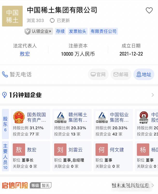 12月23日,中国稀土集团有限公司正式成立。中国稀土集团是由中国铝业集团有限公司、中国五矿集团有限公司、赣州稀土集团有限公司为实现稀土资源优势互补、稀土产业发展协同、引入中国钢研科技集团有限公司,有研科技集团有限公司等两家稀土科技研发型企业,按照市场化、法治化原则组建的大型稀土企业集团。